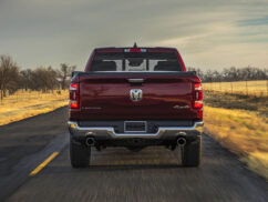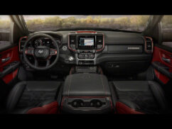 The exterior of the new Ram 1500 is livened up with some modern design that gels well with the Ram’s tough persona. The new grille design is complemented by the pair of new LED headlights that are moved 1.5 inches upwards. The power bulge on the hood adds masculinity, topped off by the engine designations plates on either side of it. At the rear, the exhaust tips have grown bigger by half-an-inch and there is now a new damped aluminium tailgate. There are 15 different wheel designs and 12 body colours offered with the range. There will be a Ram for everyone as the truck is offered in six different trims.
