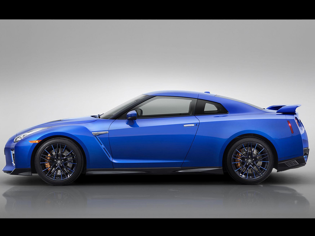 To celebrate 50 years since the launch of the first GT-R, Nissan has released a GT-R 50th Anniversary Edition package. The package offers three “heritage” exterior colour schemes – blue with white stripes, pearl white with red stripes and silver with white stripes. The colours are inspired from the KPGC10-based race cars. The “Bayside Blue” is the first time Nissan is offering the famous blue shade from the R34 Skyline GT-R model on the R35.