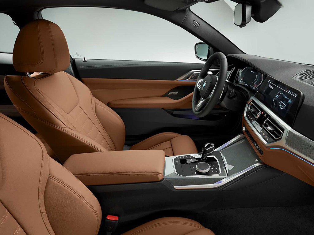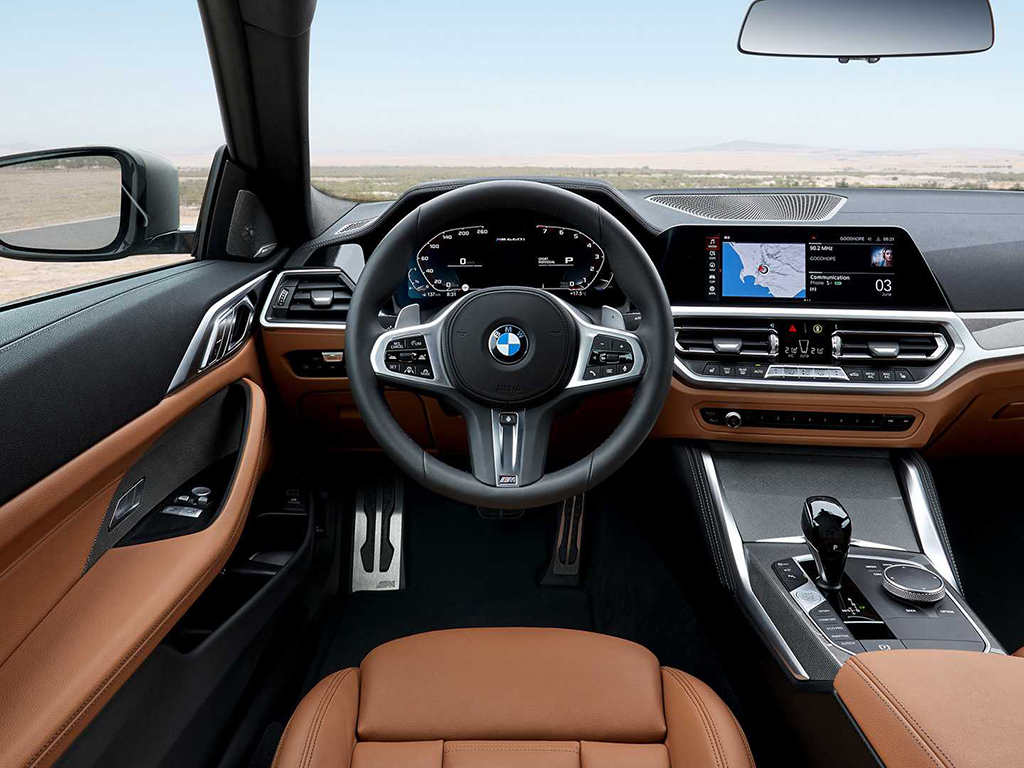 The driver-focused cockpit of the new 3 Series sedan has been pasted into the 4 Series Coupe. There is a multitude of leather options to choose from. It also gets the latest BMW iDrive 7.0 system, shining through a standard 8.8-inch touchscreen system or an optional 10.3-inch screen. There is a small 5.1-inch digital display nestled between the analogue dials, all of which can be swapped for an optional 12.3-inch digital instrument cluster. The tech list also includes wireless Android Auto and Apple CarPlay, the next-gen heads-up display, a cloud-based navigation system and more.