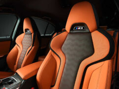 Leather bucket seats with massive side bolsters, integrated head restraints with an illuminated model badge, and M-specific perforation for better ventilation are new. Optional M Carbon seats in Alcantara are even more aggressively bolstered and come in funky colours.