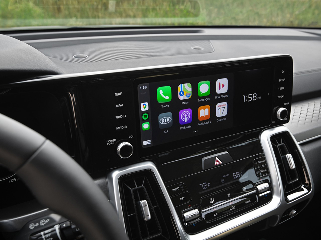 The 2021 Kia Sorento, just like every other Kia, can be loaded up with available technology. There is a large 10.3-inch touchscreen sitting on the center console, integrated neatly with the instrument console. The instrument console in itself is an even larger 12.3-inch setup, plucked straight from the K5. The infotainment is paired to a 12-speaker BOSE audio system. Kia’s UVO telematics suite gets advancements including a cloud-based navigation system that takes predicted traffic info and driver preferences into account to generate the fastest route. Google Assistant and Amazon Alexa are integrated for controlling the new Sorento via voice. Through a smartphone app, Sorento will also send various alerts to the owner.
