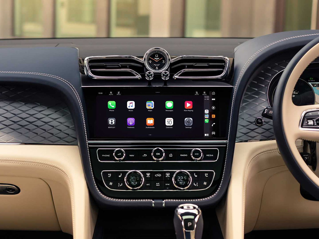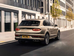 Updates inside the Bentayga Hybrid including a new 10.9-inch infotainment screen as well as a fully digital instrument cluster. Wireless Android Auto and Apple CarPlay are offered as standard now. The “bulls-eye” HVAC vents are out, making way for simpler units integrating the insanely expensive Breitling clock neatly into it.