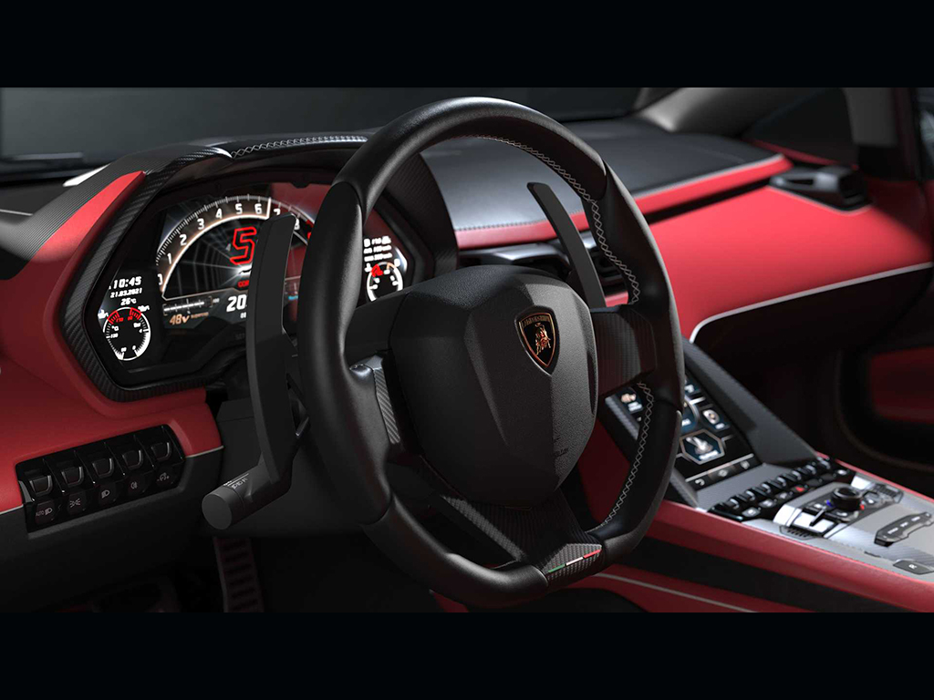 The rear end has a lot to thank the Sián for. The interior is also from the Sián, but with special badges and some small differences. To finish the exterior Lambo offers 30 different shades of paint, grouped into two — Heritage colours and Contemporary colours.