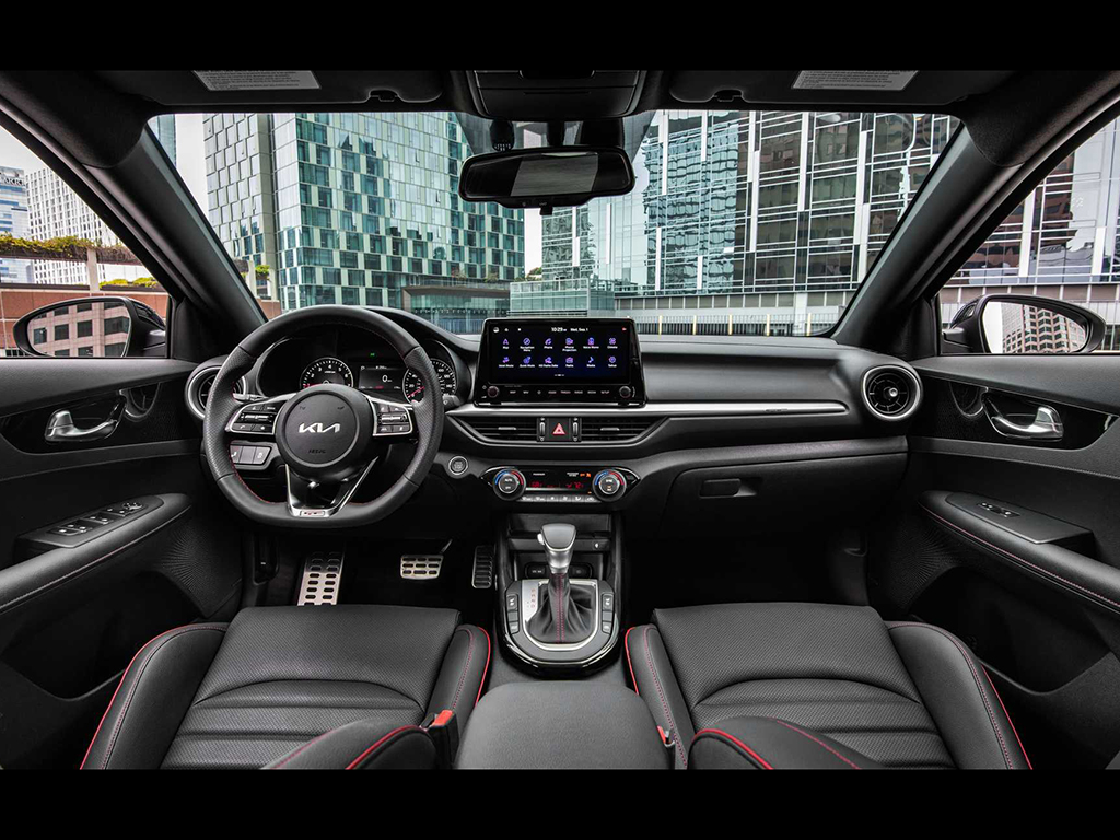 The driver information screen on the 2022 Cerato grows from 3.5 to 4.2 inches. The infotainment screen also increases in size, from an 8-inch to a 10.25-inch. Wireless Android Auto & Apple CarPlay are now added in, so are electric parking brake and auto hold. GT trims will add in leatherette upholstery and remote start.