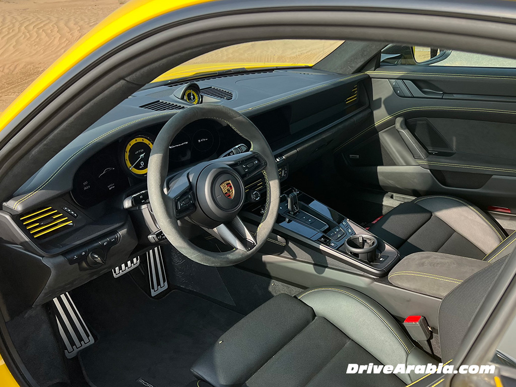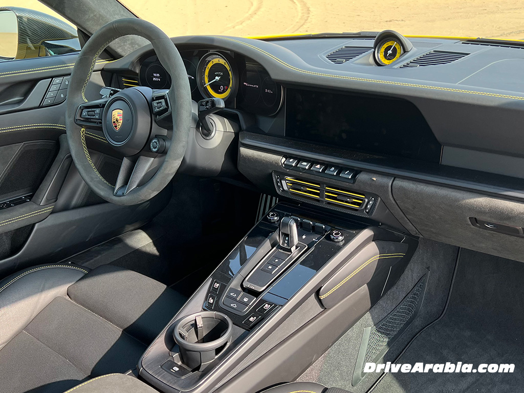 While the 911 looks stunningly modern in its latest iteration that was introduced in 2019, the GTS adds bits and pieces to differentiate itself from the standard Carrera model. The GTS gets darkened LED headlights, distinctive tail lights, satin black trim for the front lip spoiler and the race-style centre-lock alloy wheels (usually found on more track-focused models), which measure 20 inches at the front and 21 at the back, similar to the 911 Turbo. The “Sport Design” package is standard on the 911 GTS, which includes distinctive looking front and rear bumpers. The black trim at the rear certainly works with the yellow Carrera GTS we had for our test drive, but we are not so sure it will show well with darker paint jobs.