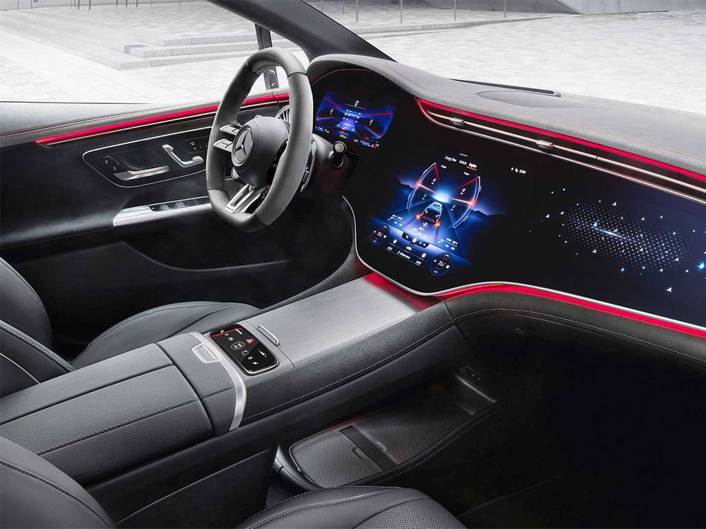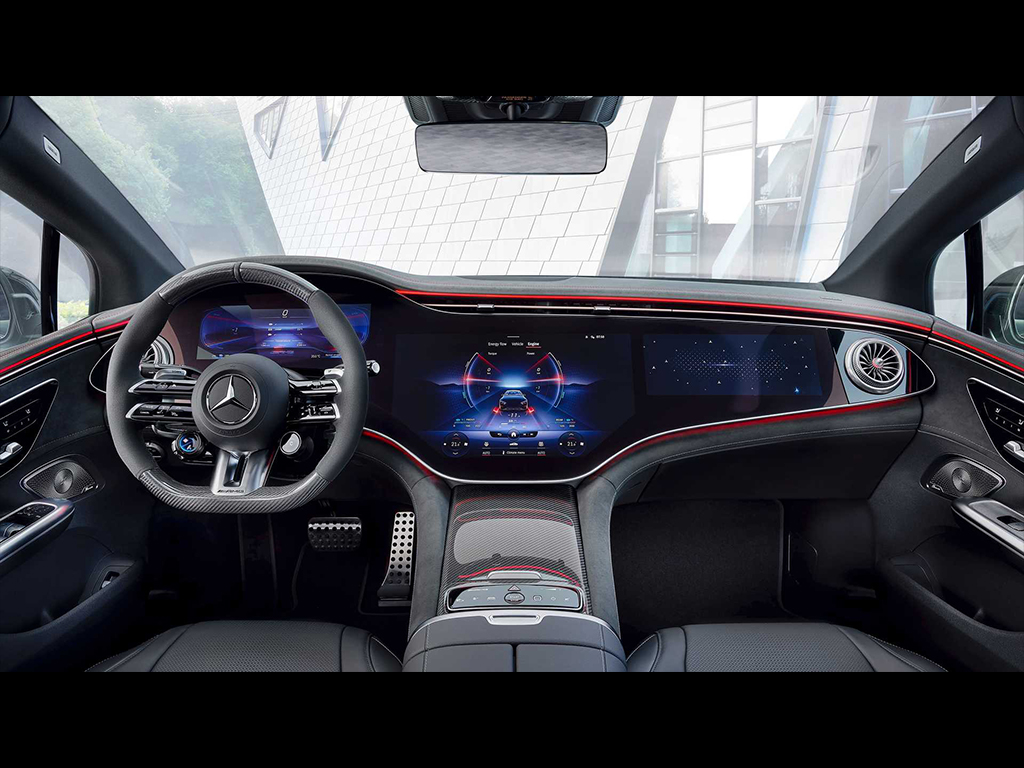 Inside, the AMG EQE gets sport seats, a flat-bottom steering wheel, and a red highlight on the trim. The massive Hyperscreen is available but only as an option. For the ones graduating from a petrol AMG, there are AMG-specific sounds that are produced artificially based on the mode selected.