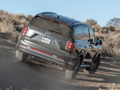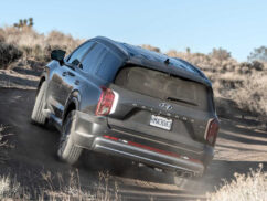 Should you prefer your SUV to be a bit more SUV than a crossover, you can opt for a new Palisade XRT. It adds a rugged vibe to this family SUV with more darkened bits, “skid-plate design elements”, black wheels, black interior, and more.