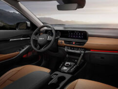 The interior is where the new Seltos gets the most of its changes. The dashboard now accommodates two 10.25-inch screens. The gear lever is gone, leaving room for a rotary dial. The HVAC vents and other controls on the centre console are repositioned to give the cabin a new look.