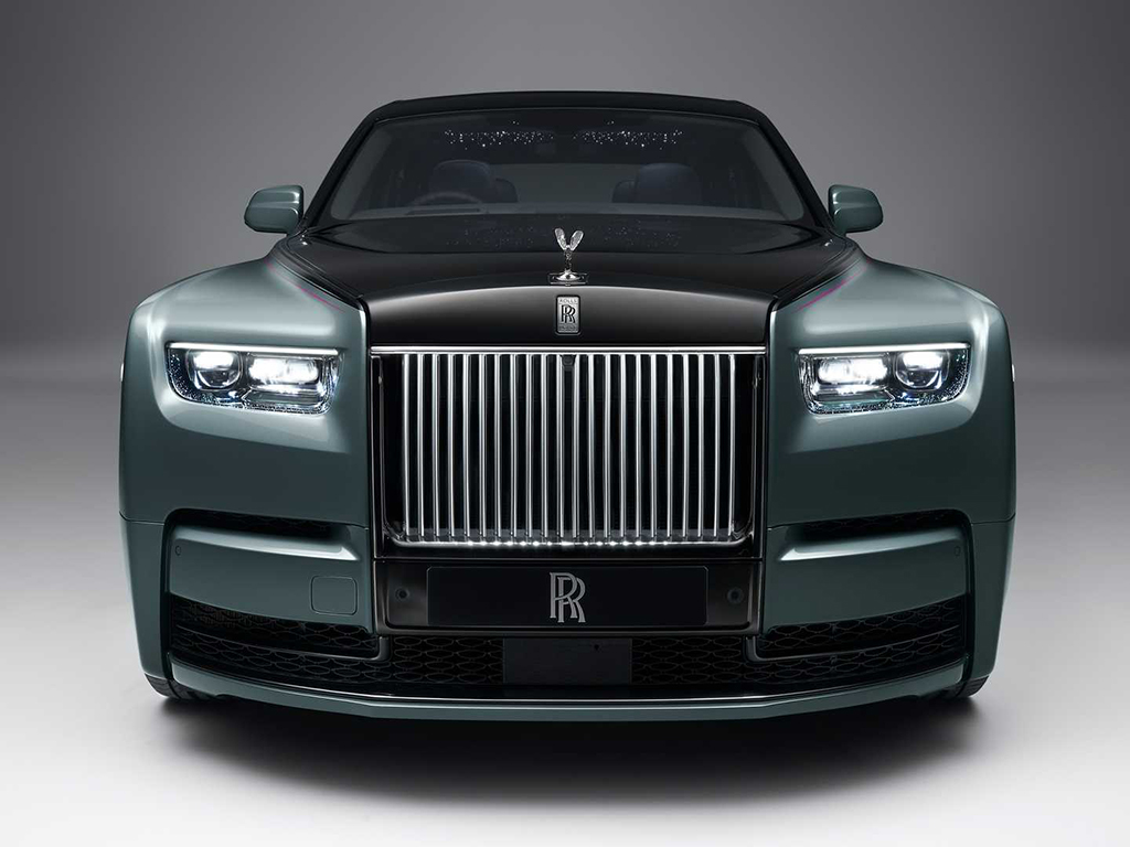 The massive front grill of the Phantom is now illuminated, just like that of the new Ghost. The chrome grill surround comes with a blackened option while a new polished chrome bar sits at its top, visually connecting it with the LED DRLs on either side. The headlamps are now even more lustrous, with laser-cut bezel starlights in them.