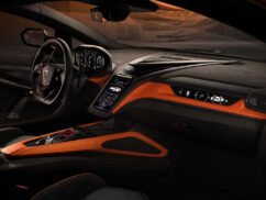 To make this power distribution even better, Lamborghini Revuelto gets electric torque vectoring, named Lamborghini Dinamica Veicolo 2.0. This allows dynamic power split between each wheel to enhance traction. It will also control the brakes if needed. Also, the brakes are massive units in this new Lambo. Each wheel gets carbon-ceramic units which are clamped down at the front by ten-piston callipers, while the rear receives four-piston units. The Lamborghini Revuelto also brings selectable brake regeneration to complement the brakes.