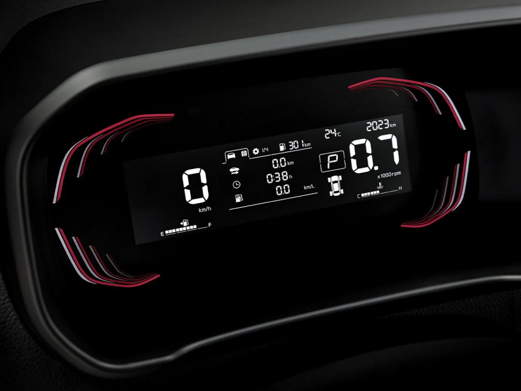 At the centre, the dashboard has manual temperature controls and an 8-inch multimedia screen equipped with Android Auto and Apple CarPlay, which also displays a rearview camera for ease.