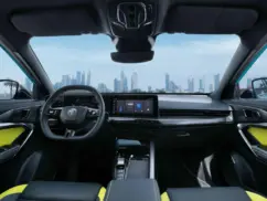 Interior features consist of leather seats, a 6-way power-adjustable driver seat, an air-purifying management system, remote engine start, keyless entry, push-button start, 6 speakers, 256-colour ambient lighting, a 12.3-inch horizontal display with Android Auto and Apple CarPlay and a wireless mobile charger.
