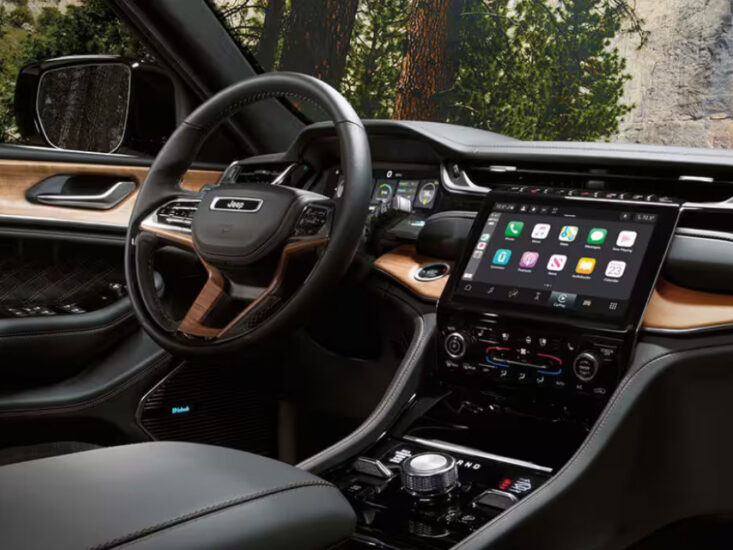 Inside, the Grand Cherokee L emphasizes functionality, with seating for up to seven passengers and a well-thought-out cabin layout. Premium materials like Nappa leather and real wood trim are available on higher trims, while lower trims rely on more basic finishes. The infotainment system, powered by Uconnect 5, features a 10.1-inch touchscreen, supporting wireless Apple CarPlay and Android Auto.