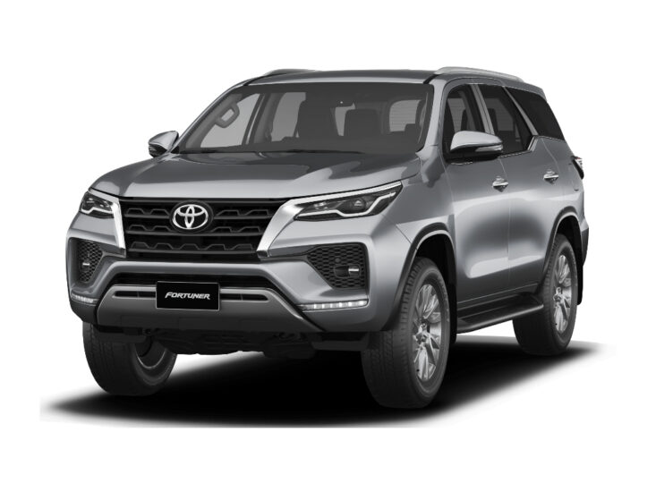 The 2025 Toyota Fortuner EXR 4WD is a midsize SUV manufactured in Thailand. It features a 2.7-litre 4-cylinder engine paired with a 6-speed automatic transmission. Exterior highlights include 17-inch alloy wheels, front and rear fog lamps, LED headlights, roof rails, a roof spoiler, rear combination lights and a silver radiator grille. The interior is equipped with manual climate control, a 4.2-inch multi-information display, an 8-inch multimedia display, Apple CarPlay and Android Auto compatibility, and a 6-speaker audio system. Safety features include rear parking sensors, a cruise control system, daytime running lights, dual front airbags, Hill-start Assist Control (HAC), a Tyre Pressure Warning System (TPWS) and an Emergency Brake Signal.