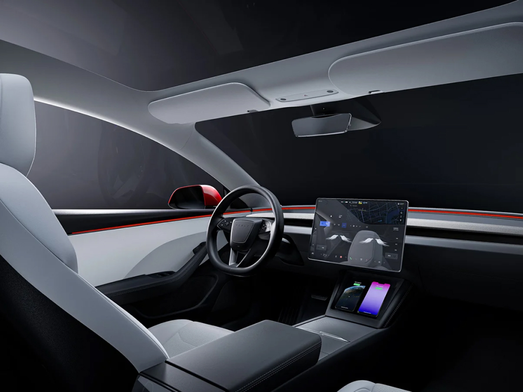 The 2025 Tesla Model 3 is a mid-size sedan manufactured in the United States. Its Rear-Wheel Drive (RWD) trim offers a range of 750 km, features an 82 kWh battery, and accelerates from 0 to 100 km/h in 5.2 seconds. The car features 18-inch alloy wheels and a 360-degree acoustic glass roof. Inside, it offers a 15.4-inch centre touchscreen, an 8-inch rear touchscreen, voice commands, in-car navigation, climate control, 9 speakers, wireless phone charging, and three driving modes: Camp Mode, Sentry Mode, and Dog Mode. Safety features include a 360-degree camera, Automatic Emergency Braking, Forward Collision Warning, Blind Spot Collision Warning and Lane Departure Avoidance.