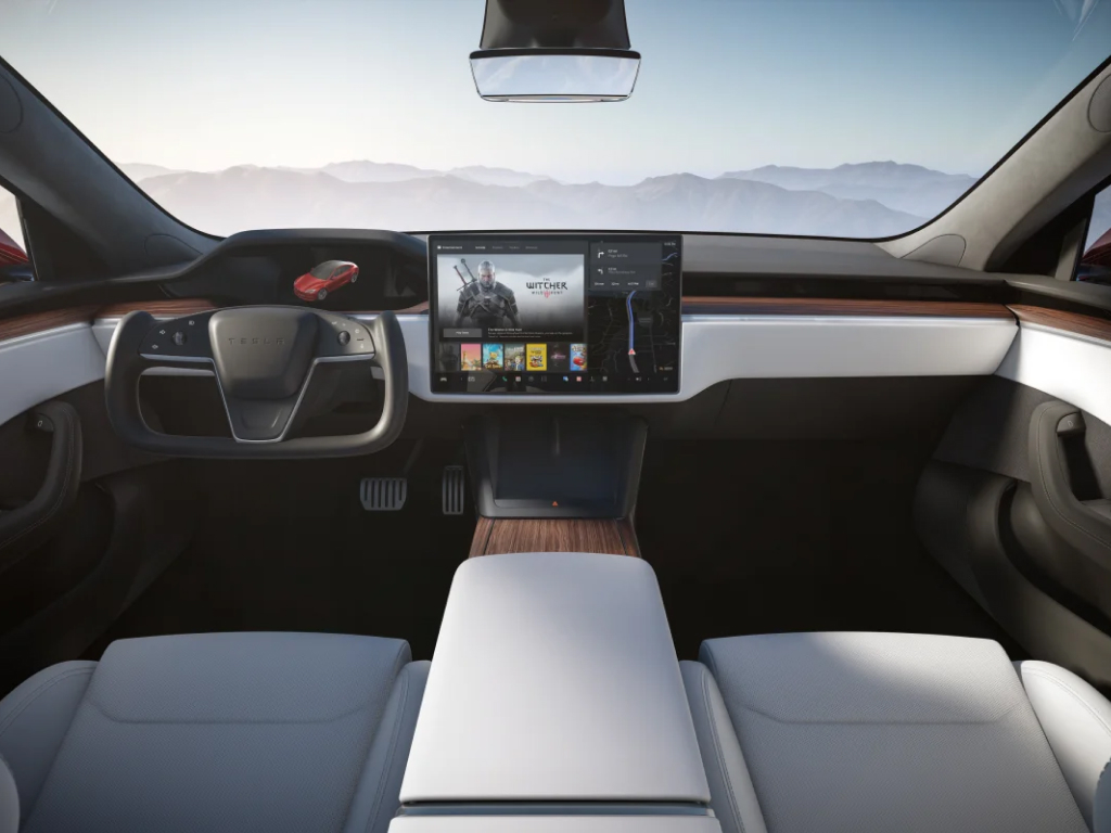 The 2025 Tesla Model S dual motor All-Wheel Drive (AWD) is a US-made electric sedan with a 95 kWh battery, accelerating from 0–100 km/h in 3.2 seconds. Exterior highlights include 19-inch alloy wheels, power steering, power-folding heated side mirrors, LED headlamps and fog lamps, automatic keyless entry, and a 360-degree acoustic glass roof. Inside, it features a 17-inch centre touchscreen, tri-zone climate control, ventilated seats, voice commands, in-car navigation, 22-speaker audio, and wireless phone charging. Safety tech includes a 360-degree camera, Automatic Emergency Braking, Forward Collision Warning, Blind Spot Collision Warning, and Auto Lane Change.